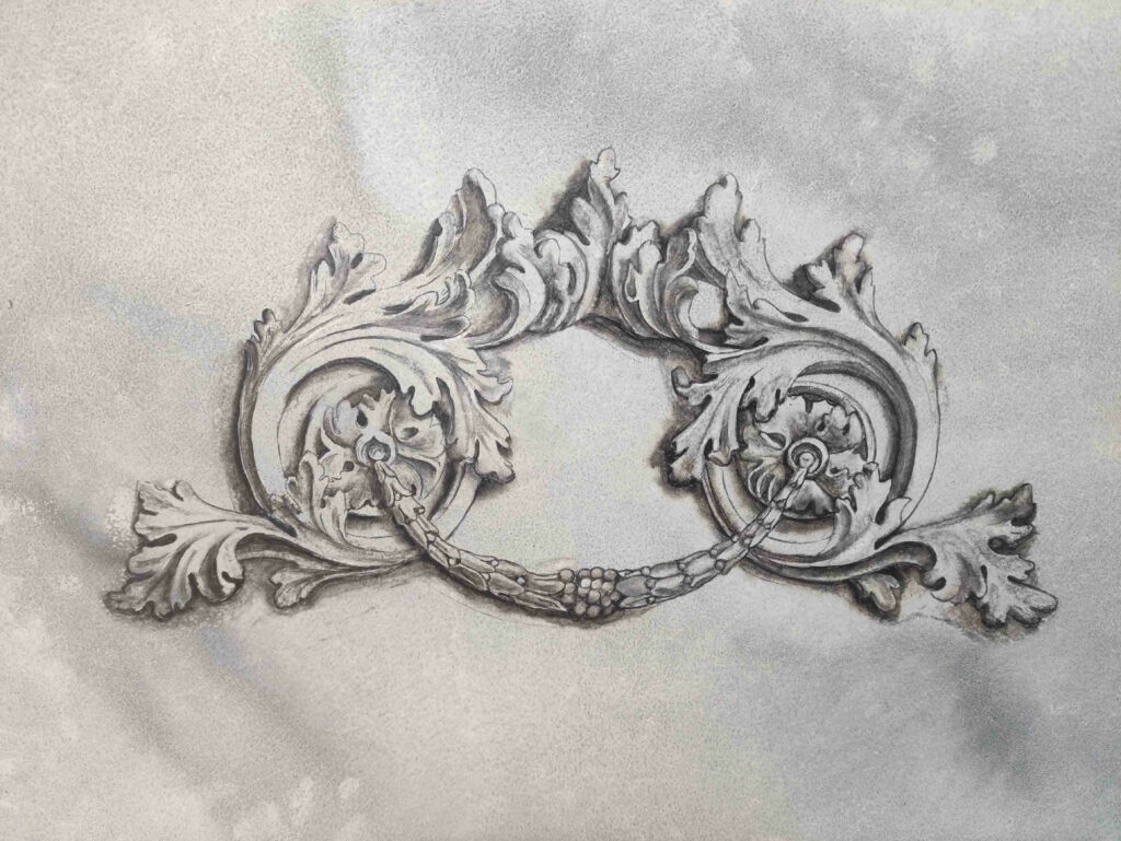 Grisaille en trompe-l’oeil peinte à l’huile.
